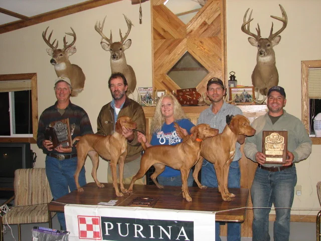 Robert Tomczak taking first and second place swept the derby. The winner, Shiloh’s A Few Dollars More or “Drifter” came out of the second brace and was known to be a brace not to miss. Drifter is a product of the Shiloh Kennels breeding program and is out of a strong producing bitch, Jazzmin, from the Cherokee line crossed with Tomczaks’ stud dog Cowboy from Rebel Rouser lines. Drifter’s bracemate Diamond won the NVA National Derby Classic in Grovespring, MO in March for owner Mike Lundy. Good friend Dustin Ochs handled Diamond. Tomczak, Lundy, and Ochs are passionate about this club and all are officers and a driving force to grow the National Vizsla Association and promote the breed by trying to offer many 1-hour championships.